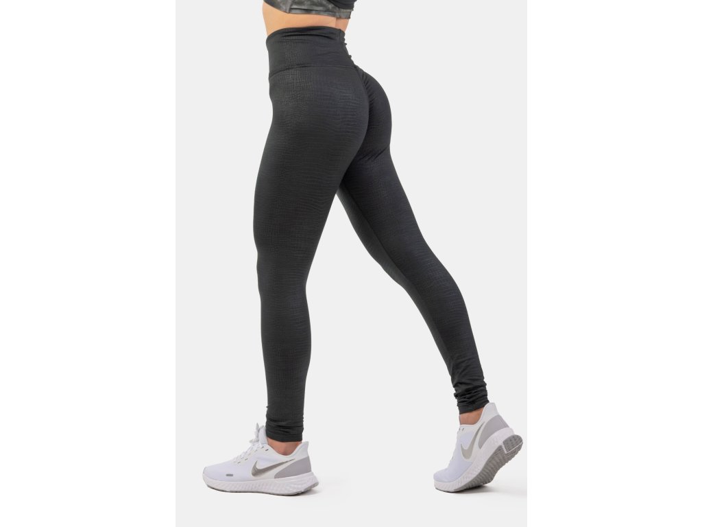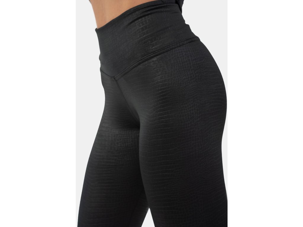 Python legíny na cvičenie s vysokým pásom so vzorom hadej kože 407 čierna NEBBIA