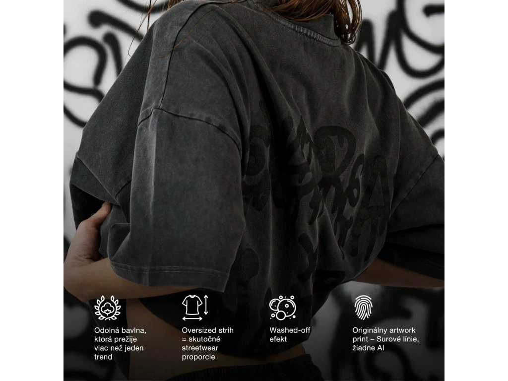 Poznámka: Kúsky zo street photoshootingu sa môžu líšiť od produktov dostupných v našom e-shope. Fotenie kolekcie vznikalo priamo s umelcom Gioelom G., ktorý počas neho sprejoval vybrané kúsky live. Každý produkt z tohto dropu však nesie unikátny print = originálny artwork od Gioeleho.