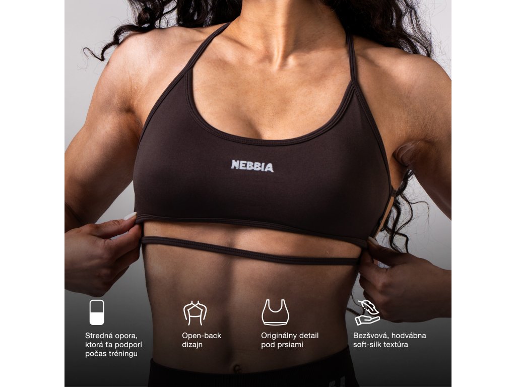 Open-back športová podprsenka POWER 890 dark brown NEBBIA