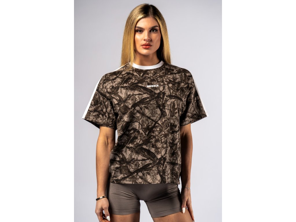 Relaxed fit tričko POWER 894 light brown camo NEBBIA