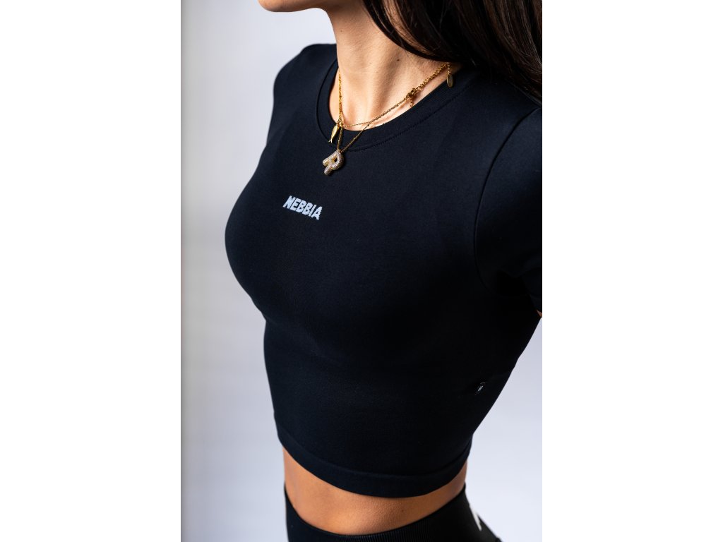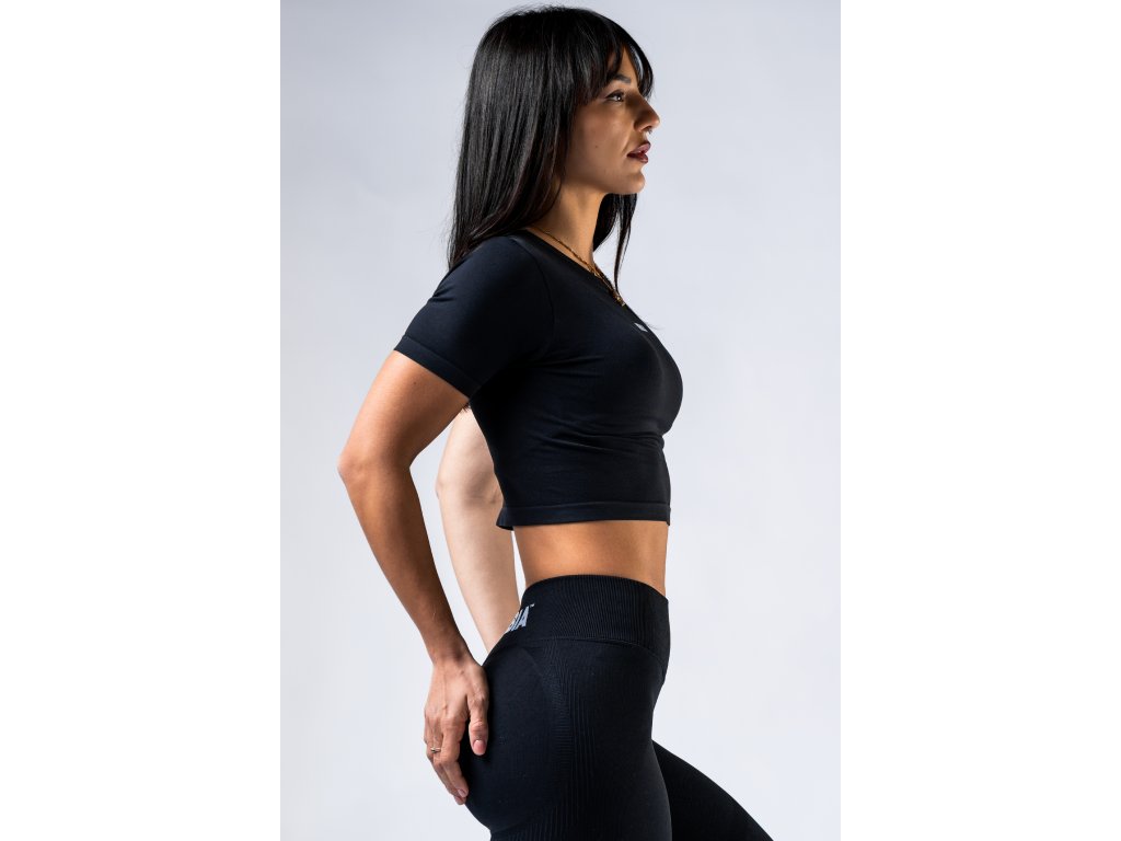 Seamless crop top s krátkym rukávom POWER 891 black NEBBIA