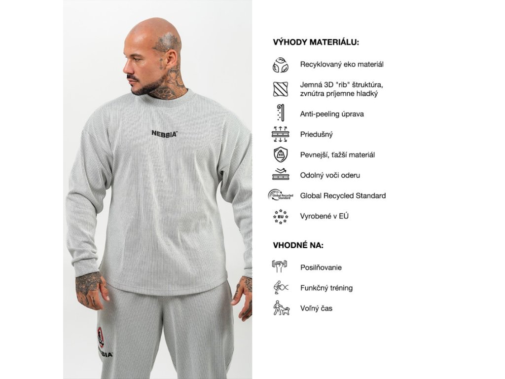 Mikina s vrúbkovanou štruktúrou pripomínajúcou menčester, ťa zahreje a zároveň 100% odlíši v akomkoľvek dave. Je strihovo najväčšia, takže sadne aj na tvoj veľký objem svalov. Vďaka spojeniu retro prvkov v modernom štýle si na seba oblečieš kus histórie kulturistiky. Na bielo-sivej oversized mikine sa vynímajú logá NEBBIA a Mr. Olympia. Vďaka nim dáš jasne najavo, do akej crew patríš!