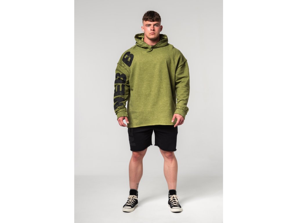 Washed-off oversized mikina s kapucňou NO BS 371 zelená NEBBIA