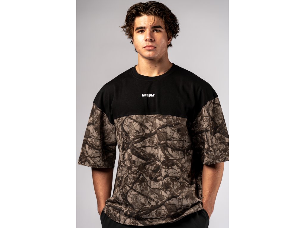 Oversized tričko POWER 898 light brown camo NEBBIA
